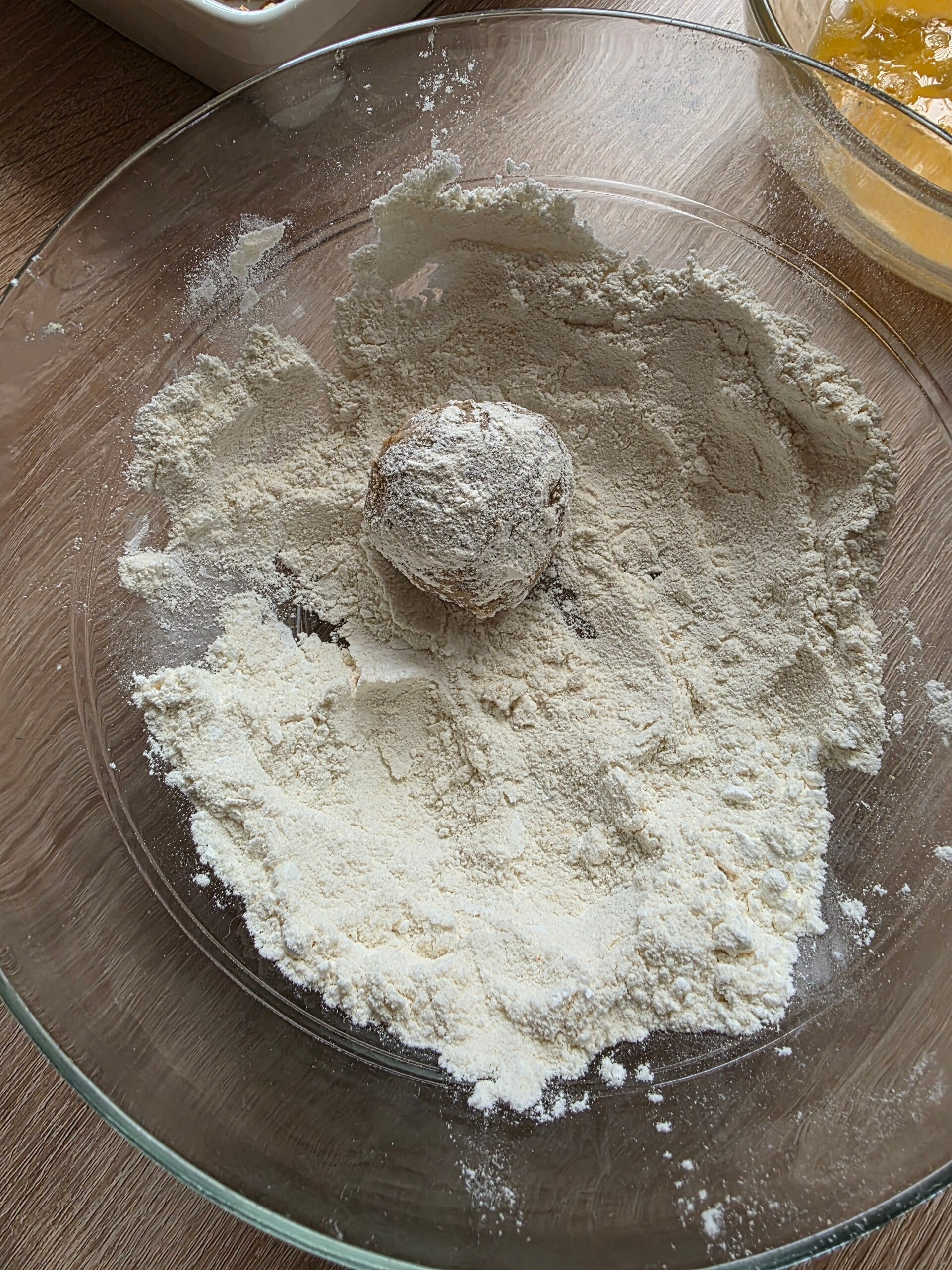 Roll balls from the meat pâte and pass them through the flour first, then through the eggs and finally through the breadcrumbs.